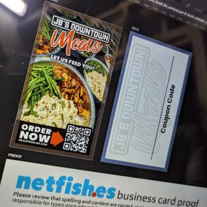We just wrapped up another delightful project with our pals at JBs Downtown in Joplin, MO! This time, we took a simple business card design and jazzed it up with a QR code, making it super easy for hungry folks to order their favorite meals with a secret coupon code written on the back. Because who doesn’t love a good slice of pizza with a side of savings?