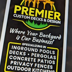 These eye-catching signs are not just pretty faces; they bring a whole toolbox of benefits to Premier Custom Decks & Design: